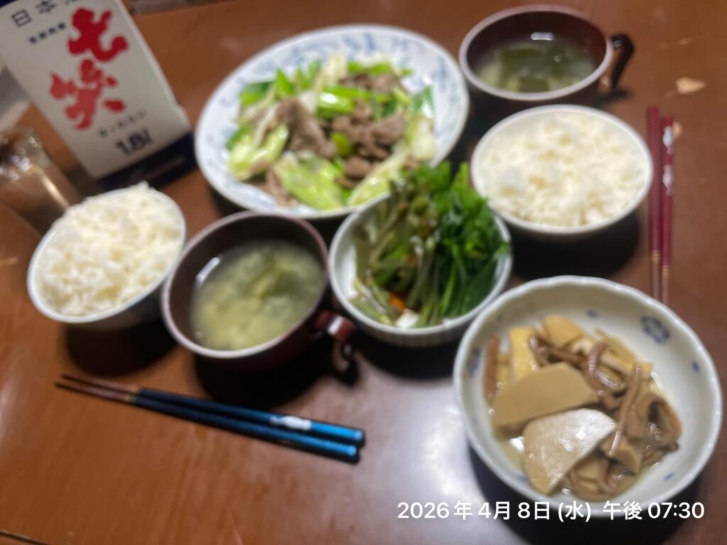 筍薇油揚げの炒め煮は昨夜の残りです。木曽の酒はこの辺りでは馴染みが薄いけど、呑みやすくてワタス好みです…
