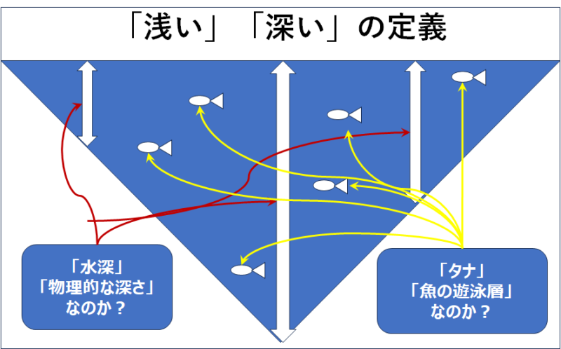 それはレイトロ界隈で『浅い』だの『深い』だの言っているのは【物理的な水深】ではなく【目的とする魚の遊泳層】を意味しているんだと、今更ながら…