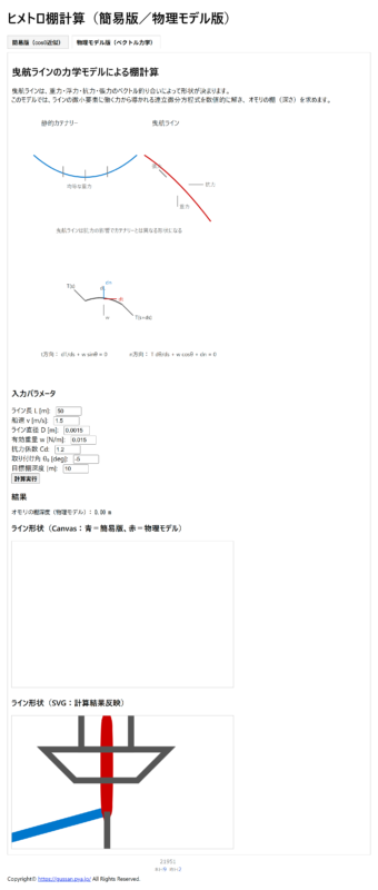 ヒメトロ棚計算のページに、曳航ラインの力学モデルによる棚計算方式を追加しました。
